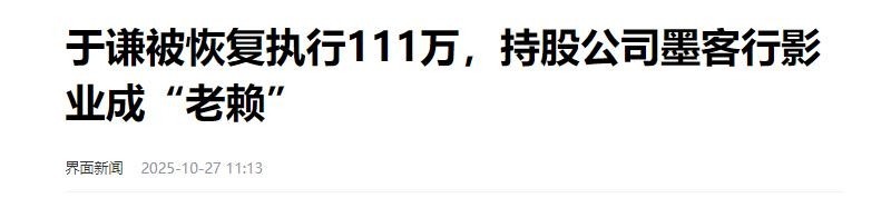 参考资料:界面新闻《于谦被恢复执万,持股公司墨客行影业成“老赖”》